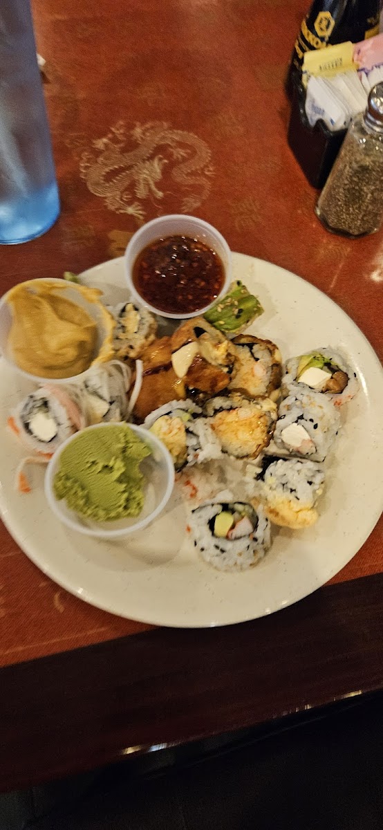 Food was good for buffet on xmas, one price all day $18.99, reasonable for holiday plus All you can eat! The sushi had many variety and sashimi, wakami salad, crab salad and octopus salads. Soups were also very tasty, I love to mix the flavors of wonton and egg drop and add 1 wonton with the chives and crunchy wonton noodles. This soup station did not dissapoint! I Would have loved to see crab legs but didnt realize A sign by the door that this is an add option of 2 lbs for 18.99. My sons favorite was black pepper chicken said he was so full, but he wanted more of that chicken! We asked how much to take some chicken home. You can buy by the pound!